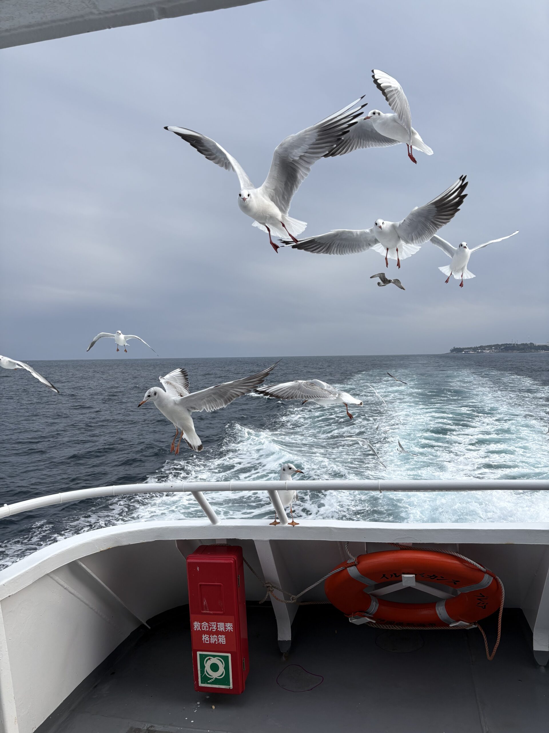 出航から着くまでカモメが船の周りを飛んでいてびっくりしましたが癒されました!