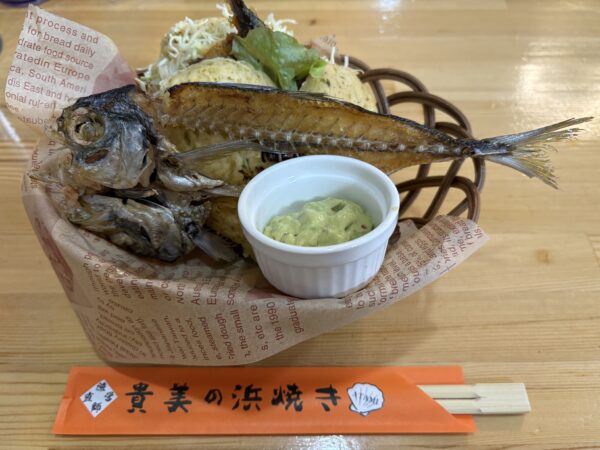 熱海の海産物を食べるのも旅行の楽しみでした。アジのハンバーガーが予想以上に美味しかったです。そして骨せんべいもポリポリと美味しくいただきました!