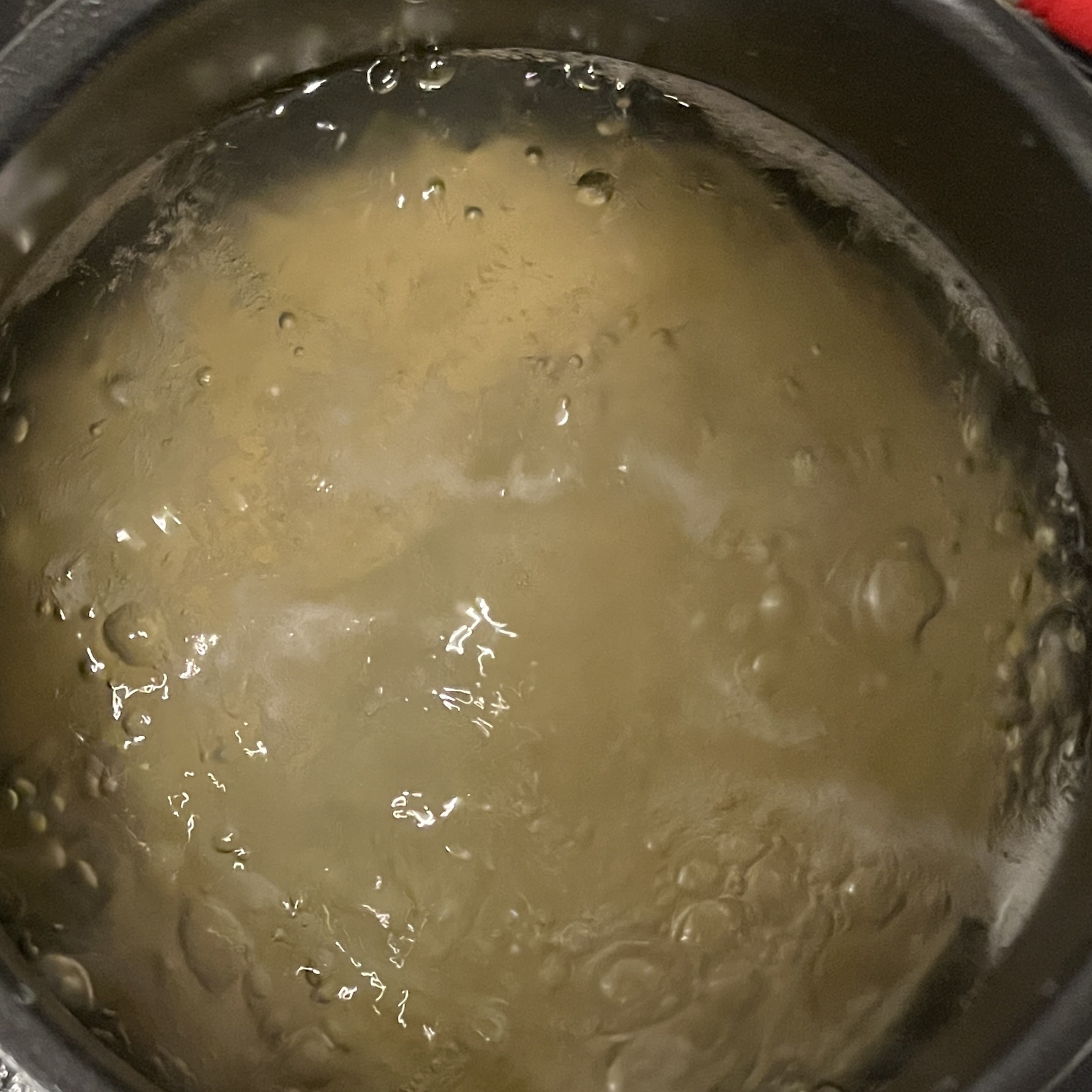 最初は強火ですが、シュワシュワしてきたら、弱火に。