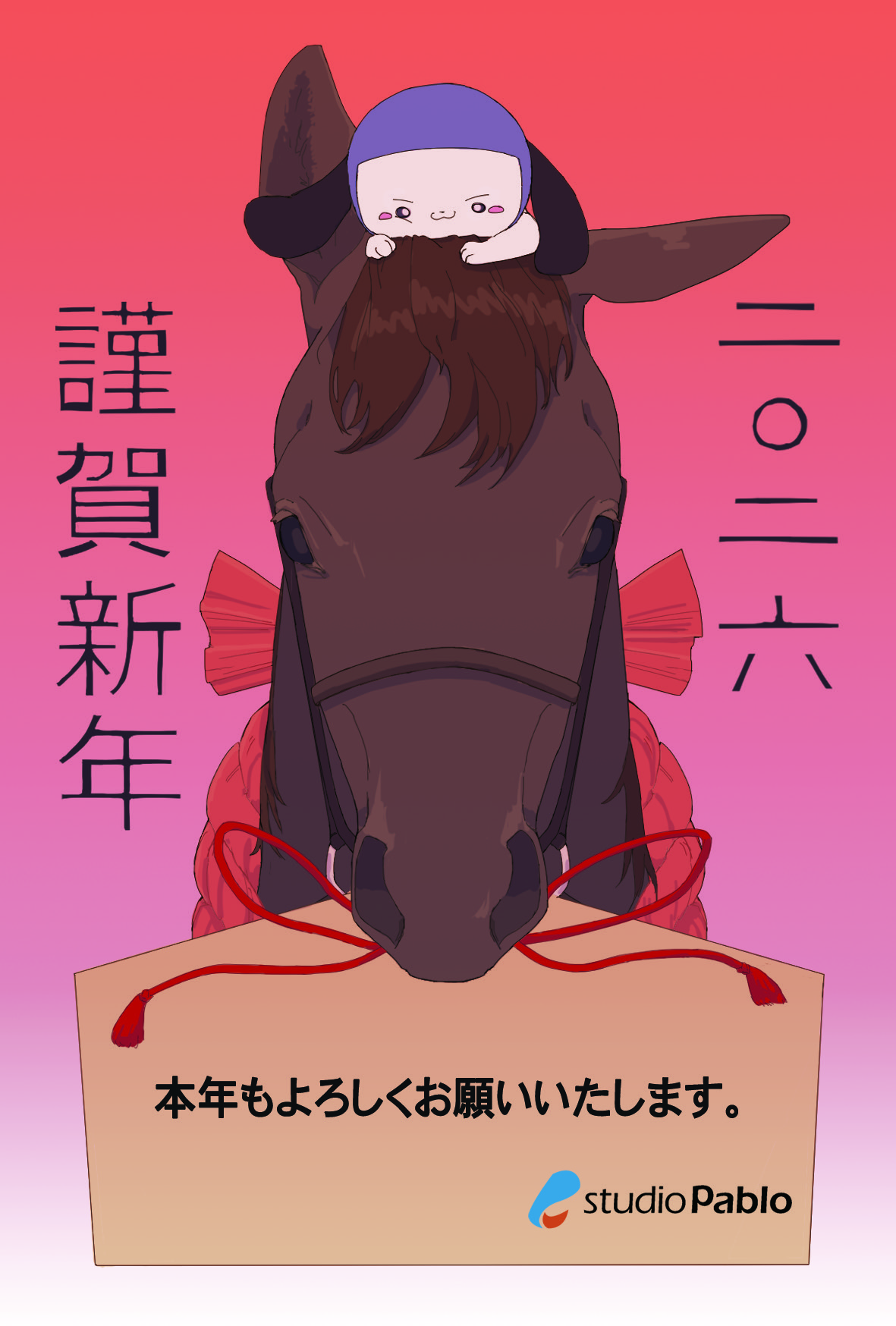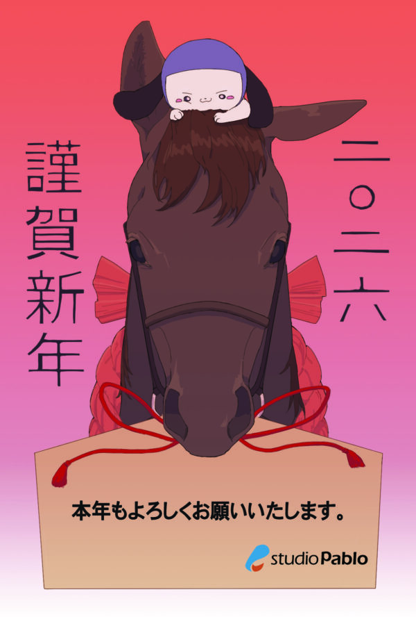 お知らせ 2026年 新年のご挨拶 pablo 2026-01-01 新年あけましておめでとうございます。 2026年、本年もスタッフ一同、精一杯頑作品作りに取り組んでいきます。 どうぞよろしくお願いいたします。 2026年が皆様にとって良い1年になりますように。 2026年 スタジオPABLO スタッフ一同