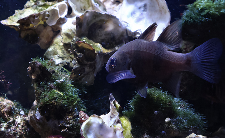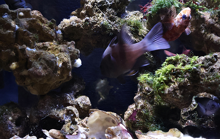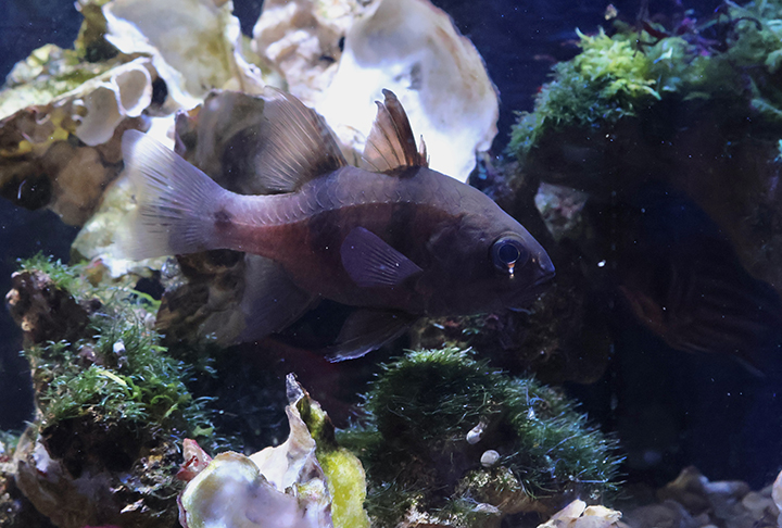 おとなしい性質で他の魚イットウダイの仲間と混泳していますが、積極的に餌をとりに行かず、目の前にきたものだけ食べる感じです。