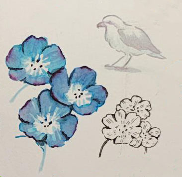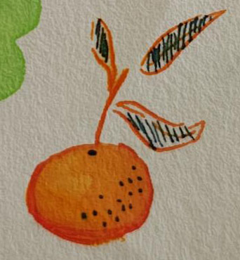 上の画像ですとお花やみかんは違う色を組み合わせて描いていますが、鳥は一色のインクです。